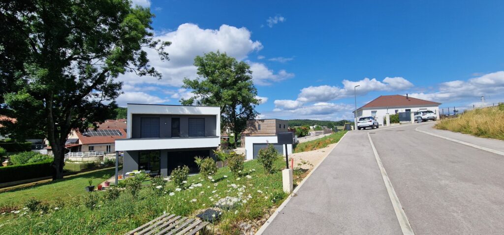 Découvrez notre réalisation à Pelousey, située en surplomb de cette charmante commune rurale, située à l’ouest de Besançon à seulement quelques minutes de la gare des Auxons et de la zone commerciale de Besançon Valentin.